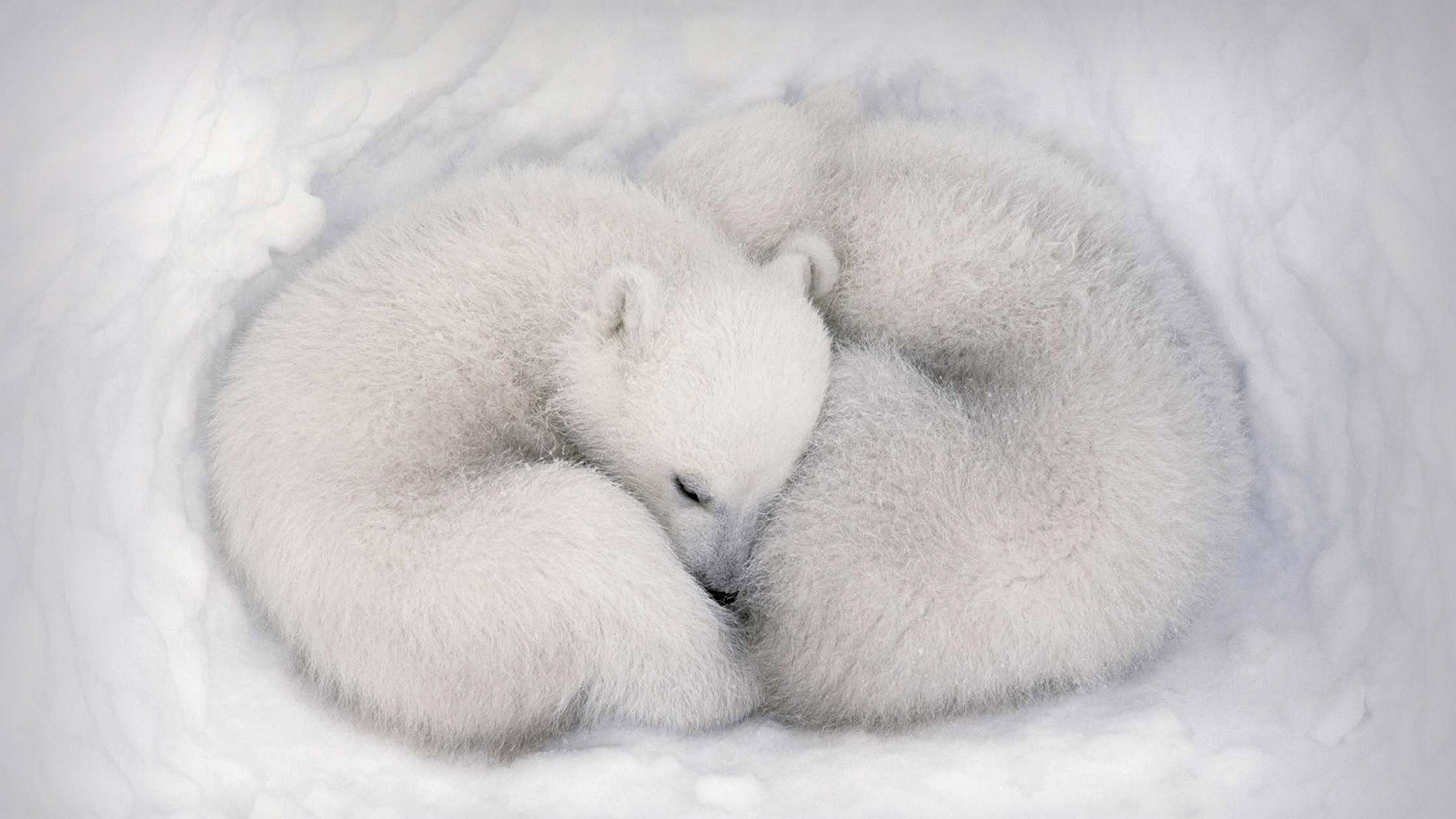 Twin polar bear cubs asleep in a snow den in Wapusk National Park, 马尼托巴, 加拿大 (© AF archive/Alamy)