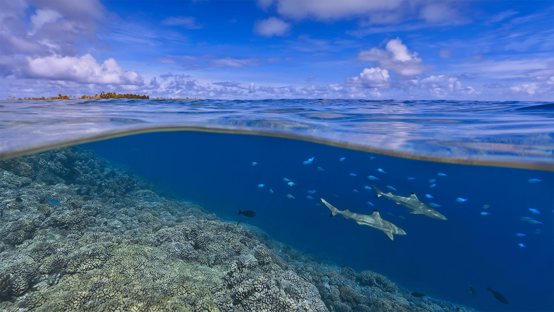 Blacktip reef sharks off the coast of Tahiti