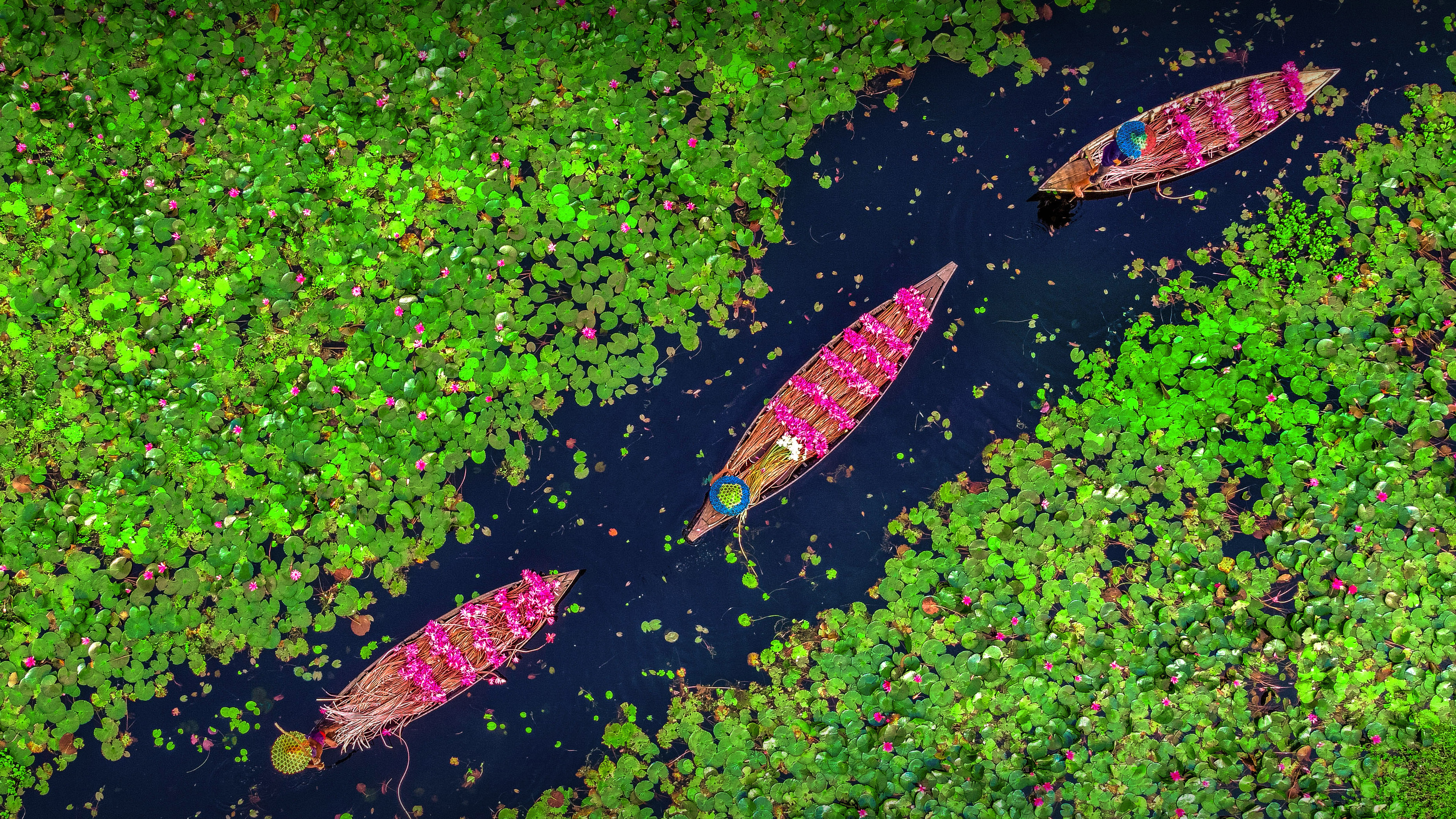 Farmers collecting water lilies in the Satla marshland near Bagdha, Barisal, Bangladesh (© Mustasinur Rahman Alvi/Future Publishing via 盖蒂图片社)