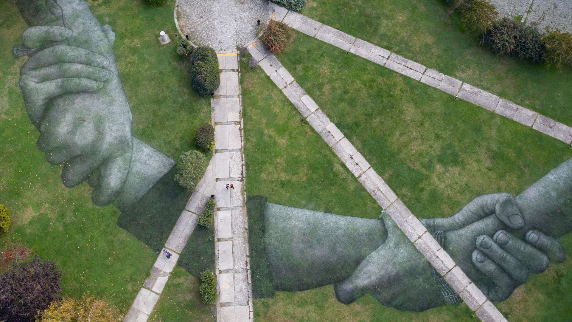 Giant land art fresco by artist Saype in Istanbul, Türkiye (© Chris McGrath/盖蒂图片社)