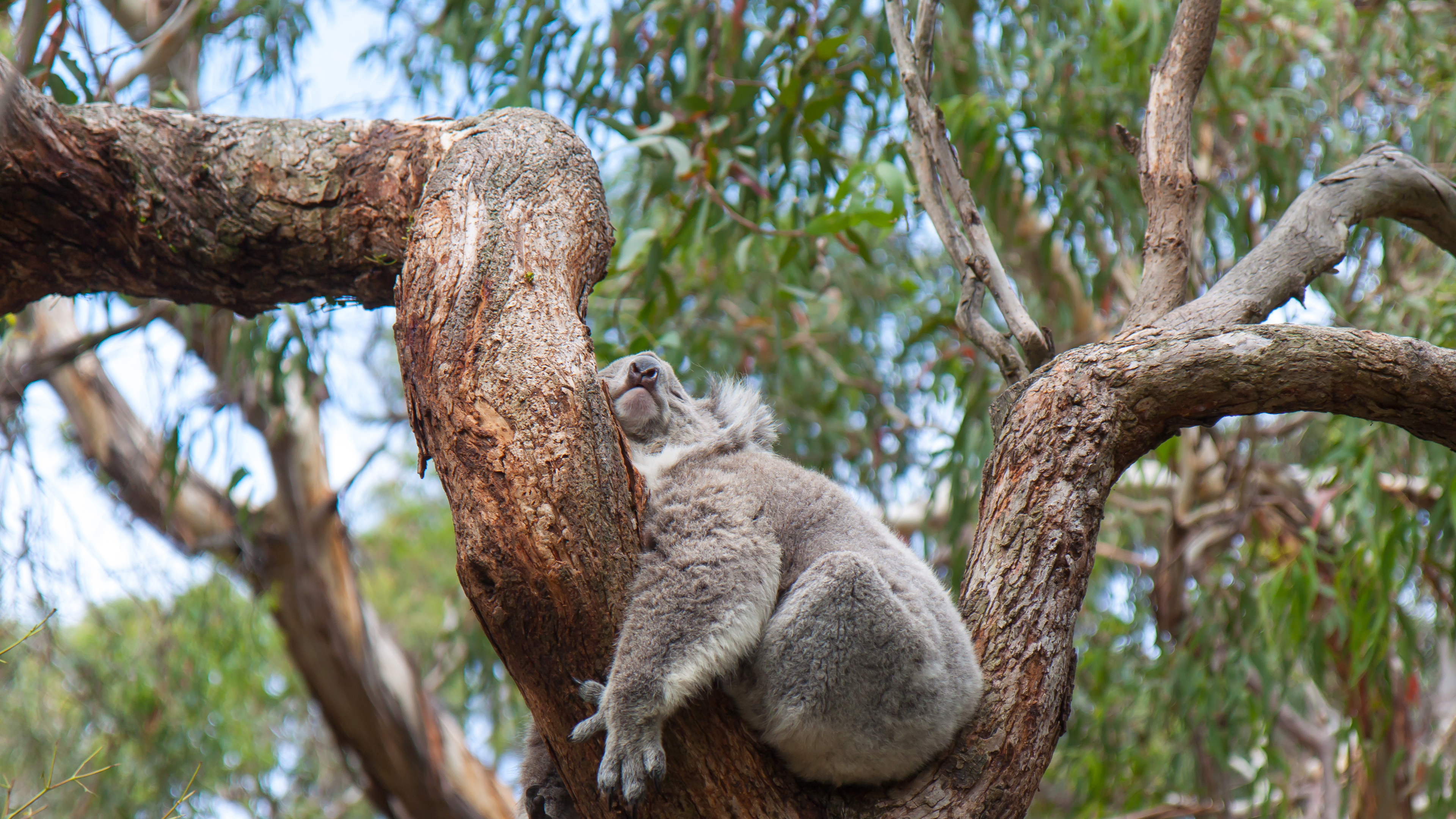 A koala sleeping in a eucalyptus tree, 澳大利亚 (© Anton Rogozin/盖蒂图片社)
